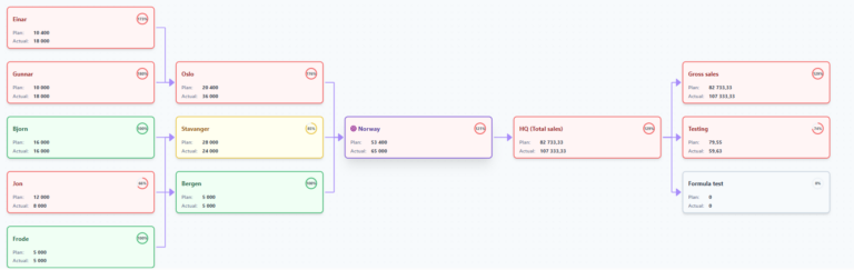 Create Best, Base, and Worst case scenarios to model different outcomes. Build formula-based plans where changes cascade automatically through all connected KPIs. Test assumptions safely and compare results by switching between scenarios.